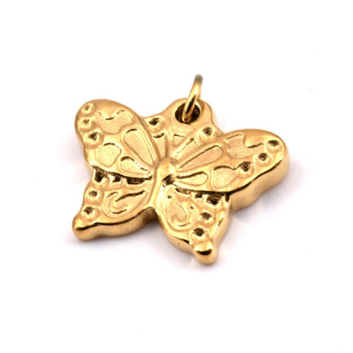 £2.80| /Butterfly pendant Golden stainless steel 15mm (1)