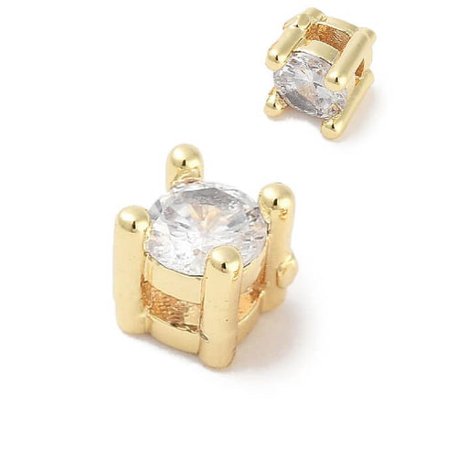 Tiny Heart pendant golden plated brass - pink fushia zircon 7.5x6x2mm - Hole: 1.5mm (1)